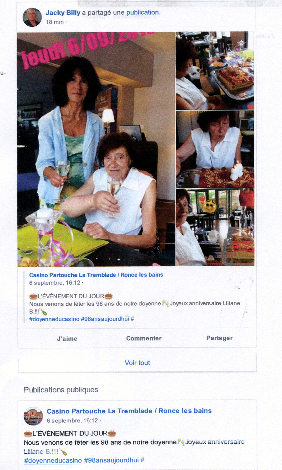 98 ans Mémé Lili à Ronce les Bains